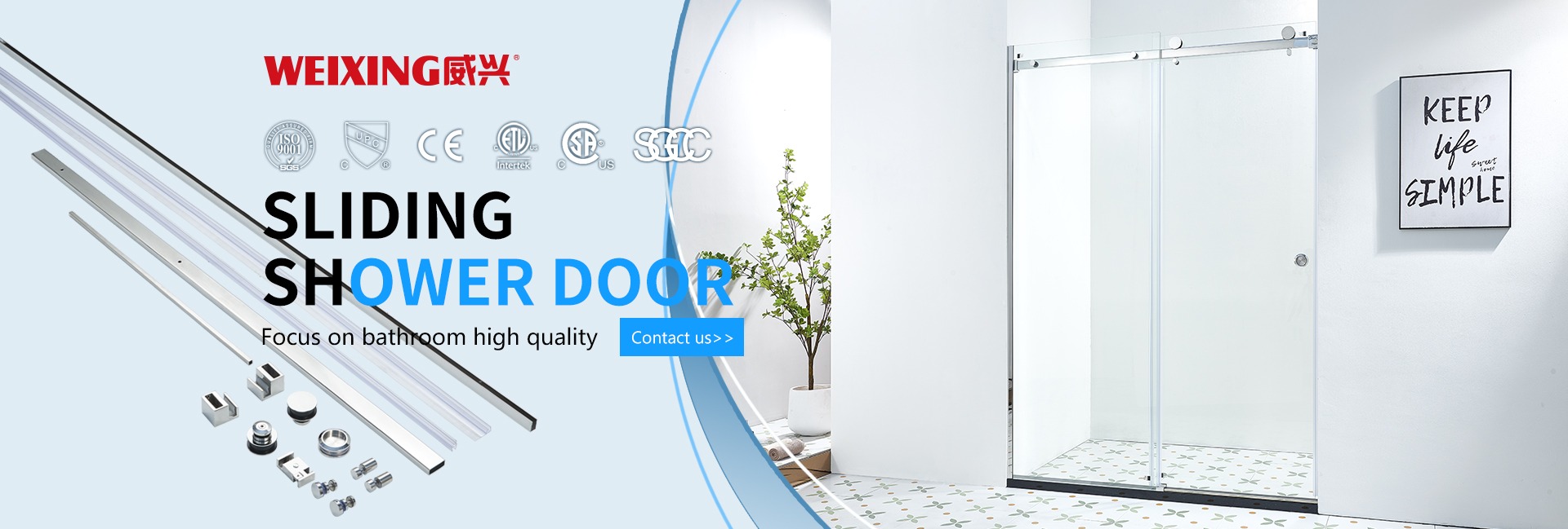 Weixing-Pistola cepillada personalizada, puerta de ducha de vidrio templado con marco de acero inoxidable 304 de doble corredera gris