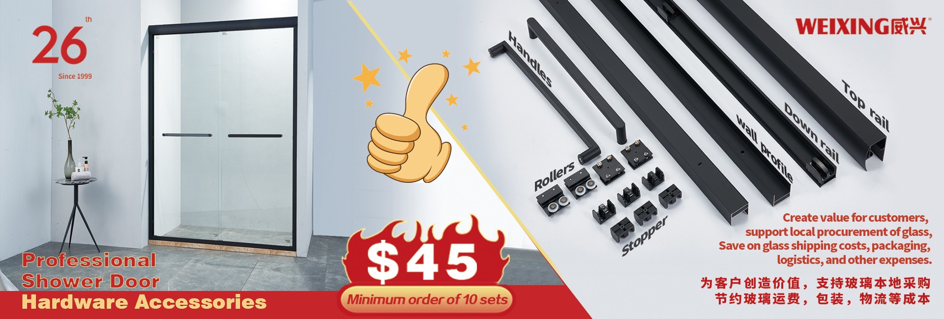 Puerta de ducha de vidrio templado con marco deslizante doble de acero inoxidable 304 negro mate personalizado Weixing